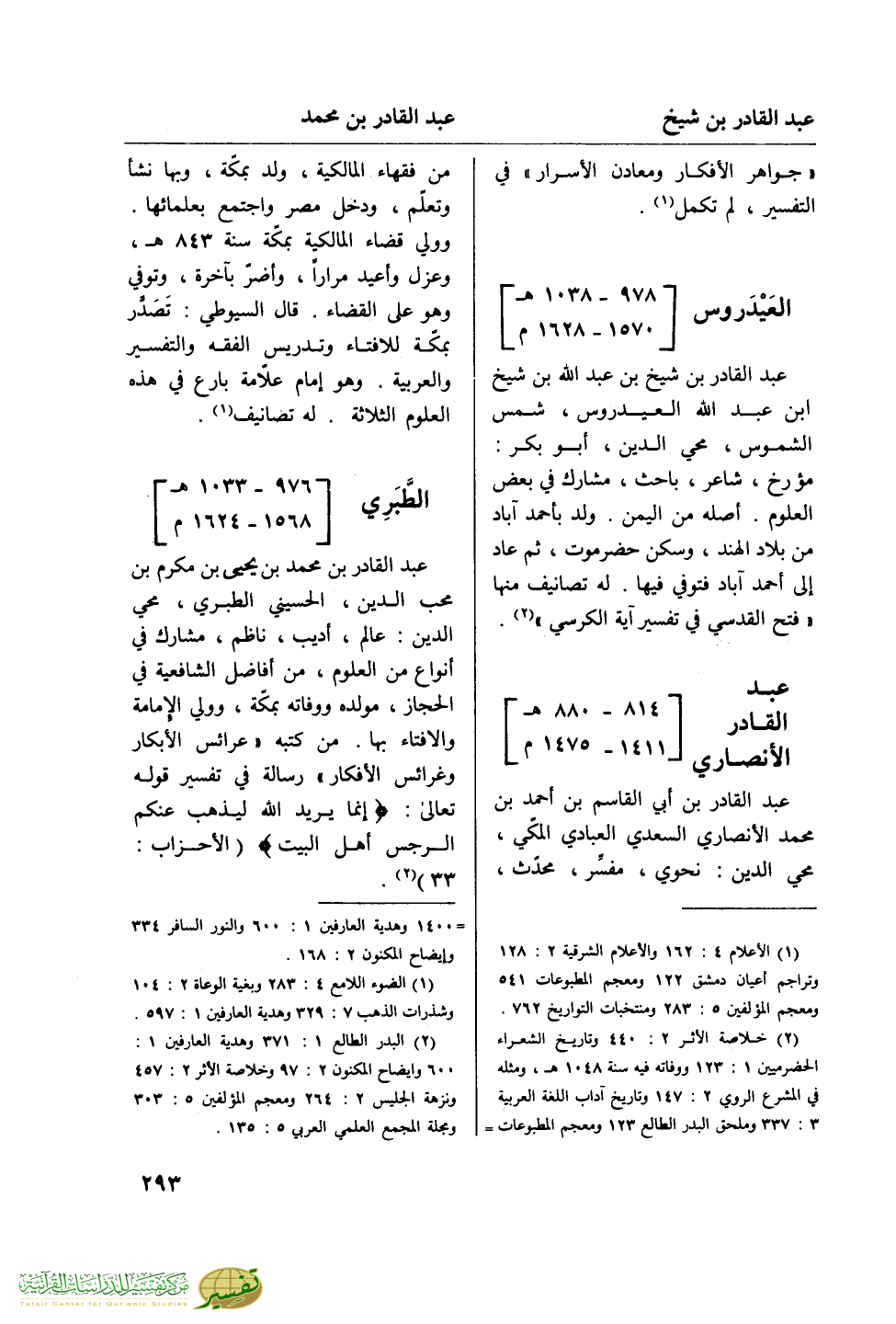(¬2) خلاصة الأثر 2: 440 وتاريخ الشعراء الحضرميين 1: 123 ووفاته فيه سنة 1048 هـ، ومثله في المشرع الروي 2: 147 وتاريخ آداب اللغة العربية 3: 337 وملحق البدر الطالع 123 ومعجم المطبوعات =