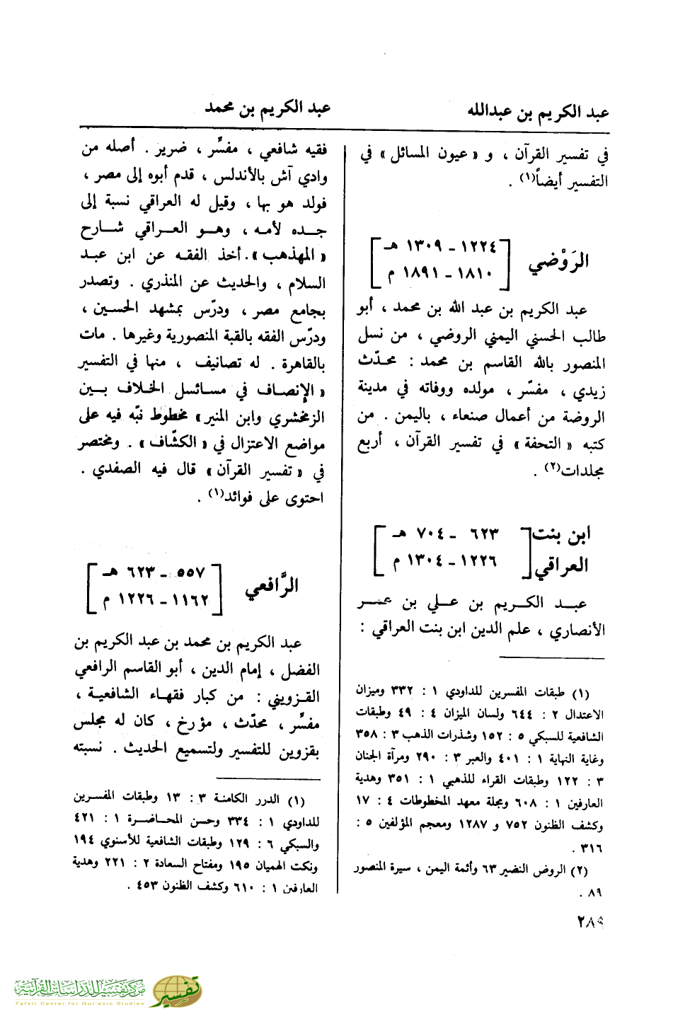 (¬1) طبقات المفسرين للداودي 1: 332 وميزان الاعتدال 2: 644 ولسان الميزان 4: 49 وطبقات الشافعية للسبكي 5: 152 وشذرات الذهب 3: 358 وغاية النهاية 1: 401 والعبر 3: 290 ومرآة الجنان 3: 122 وطبقات القراء للذهبي 1: 351 وهدية العارفين 1: 658 ومجلة معهد المخطوطات 4: 17 وكشف الظنون 752 و 1287 ومعجم المؤلفين 5: