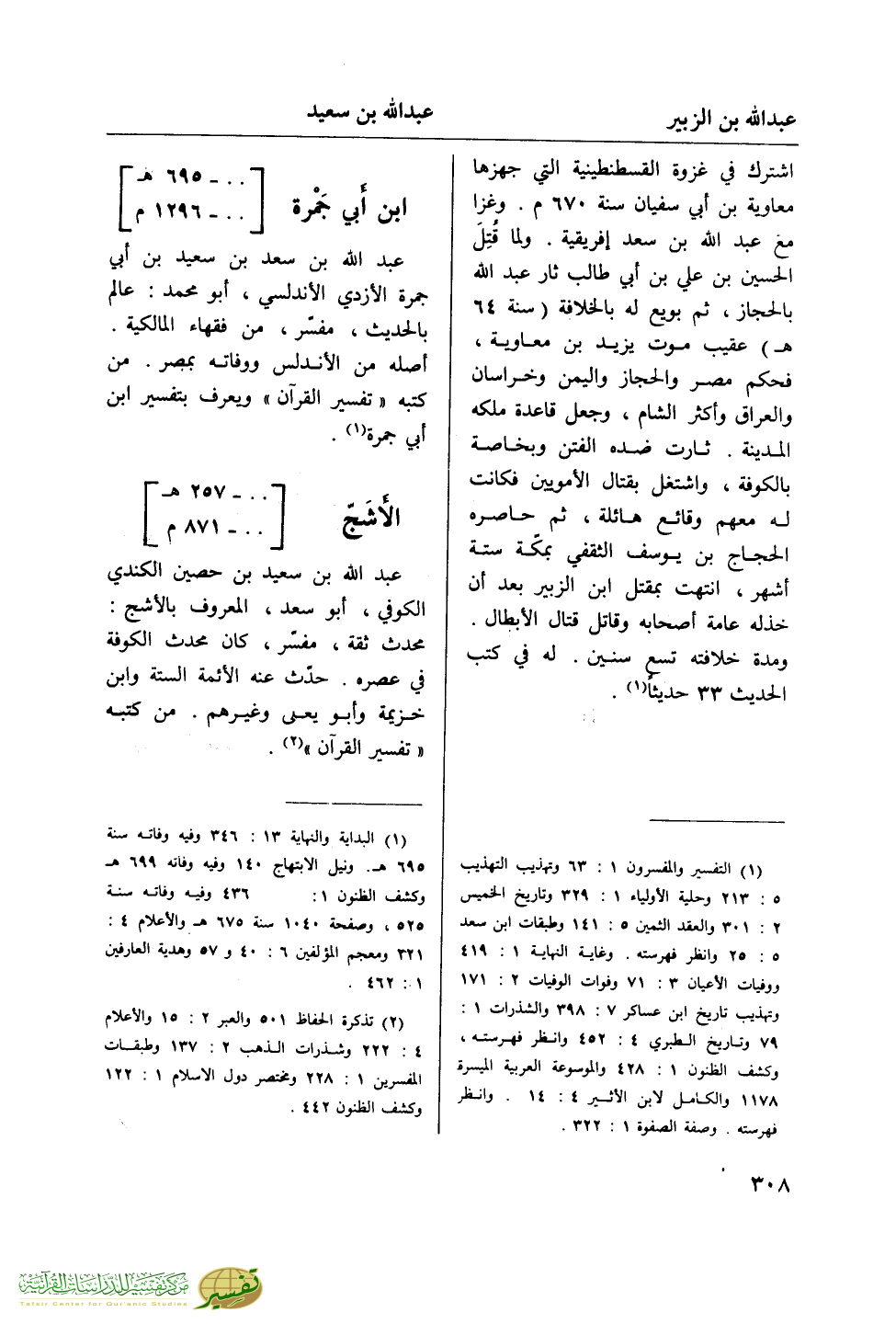 (¬2) تذكرة الحفاظ 501 والعبر 2: 15 والأعلام 4: 222 وشذرات الذهب 2: 137 وطبقات المفسرين 1: 228 ومختصر دول الإسلام 1: 122 وكشف الظنون 442.