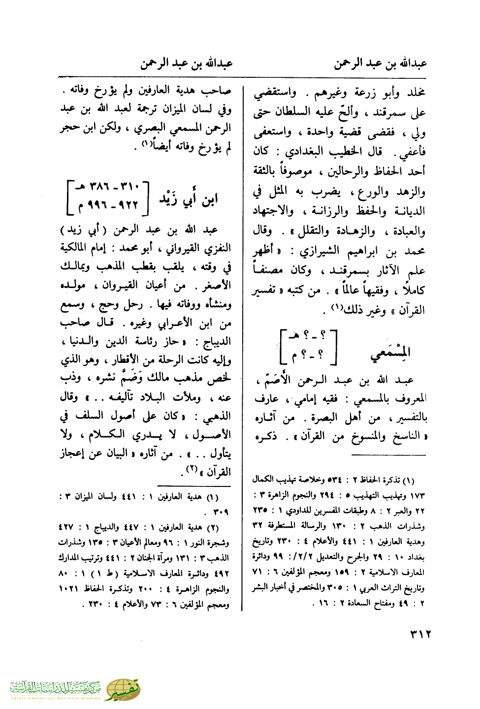 (¬1) تذكرة الحفاظ 2: 534 وخلاصة تهذيب الكمال 173 وتهذيب التهذيب 5: 294 والنجوم الزاهرة 3: 22 والعبر 2: 8 وطباقات المفسرين للداودي 1: 235 وشذرات الذهب 2: 130 والرسالة المستطرفة 32 وهدية العارفين 1: 441 والأعلام 4: 230 وتاريخ بغداد 10: 29 والجرح والتعديل 2/ 2/: 99 ودائرة المعارف الإسلامية 2: 159 ومعجم المؤلفين 6: 71 وتاريخ التراث العربي 1: 305 والمختصر في أخبار البشر 2: 49 ومفتاح السعادة 2: 16.