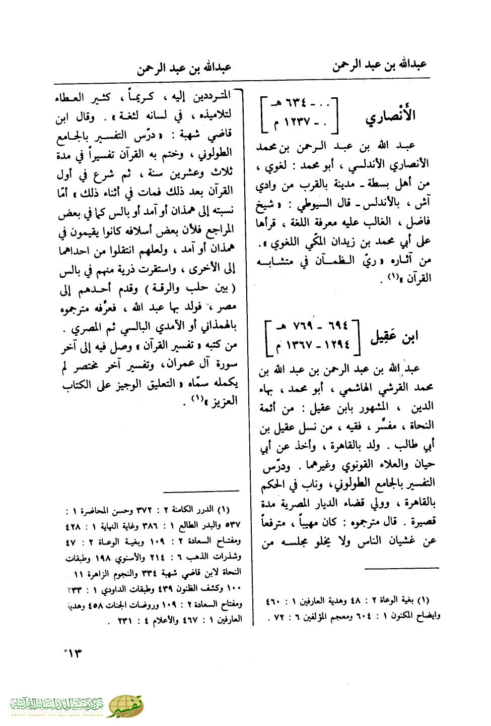 (¬1) الدرر الكامنة 2: 372 وحسن المحاضرة 1: 537 والبدر الطالع 1: 386 وغاية النهاية 1: 428 ومفتاح السعادة 2: 109 وبغية الوعاة 2: 47 وشذرات الذهب 6: 214 والأسنوي 198 وطبقات النحاة لابن قاضي شهبة 334 والنجوم الزاهرة 11: 100 وكشف الظنون 439 وطبقات الداودي 1: 233 ومفتاح السعادة 2: 109 وروضات الجنات 458 وهدية العارفين 1: 467 والأعلام 4: 231.