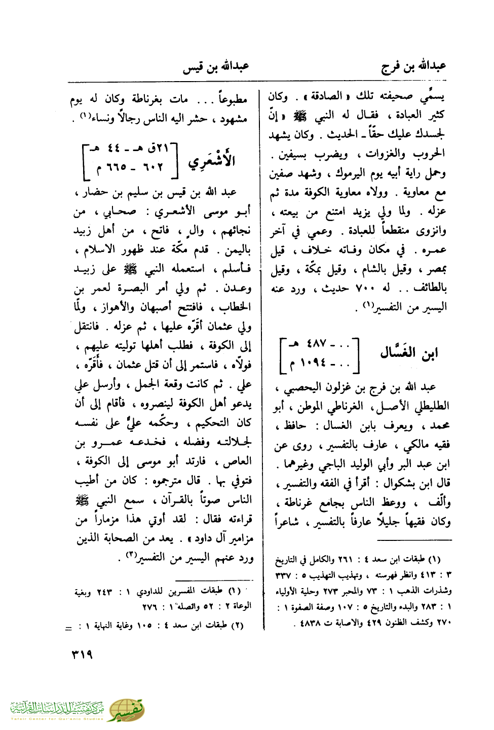 (¬1) طبقات المفسرين للداودي 1: 243 وبغية الوعاة 2: 52 والصله 1: 276