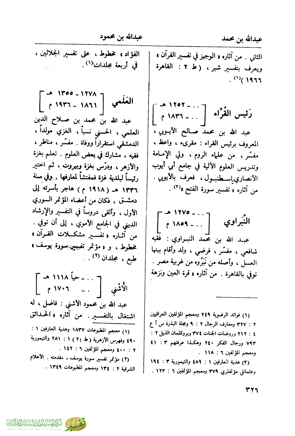(¬1) فوائد الرضوية 249 ومعجم المؤلفين العراقيين 2: 327 ومعارف الرجال 2: 9 ومجلة البذرة س أع 4: 212 وروضات الجنات 374 وبروكلمان الذيل 2: 793 ورجال الفكر 245 وهكذا عرفتهم 3: 41 ومعجم المؤلفين 6: 118.