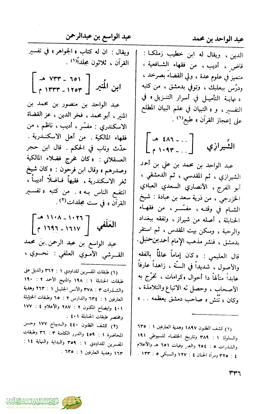 (¬1) كشف الظنون 1897 وهدية العارفين 1: 635 والسلوك 1: 389 وتاريخ الخلفاء للسيوطي 191 والشذرات 5: 254 والعبر، وفيات 651 هـ والأعلام 4: 325 ومرآة الحنان 4: 127 والسبكي 5: 133.