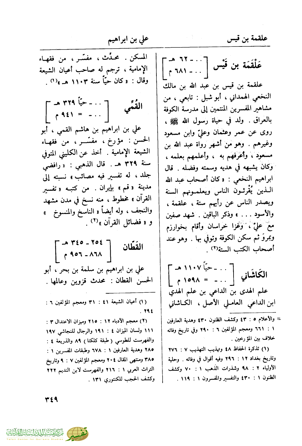 (¬2) معجم الأدباء 12: 215 وميزان الاعتدال 3: 111 ولسان الميزان 4: 191 والرجال للنجاشي 197 والفهرست للطوسي (طبقة كلكتا) 89 والذريعة 4: 285 وهدية العارفين 1: 678 وطبقات المفسرين 1: 385 ومنتهى المقال 204 ومعجم المؤلفين 7: 9 وتاريخ التراث العربي 1: 216 والفهرست لابن النديم 222 وكشف الحجب للكنتوري 131.