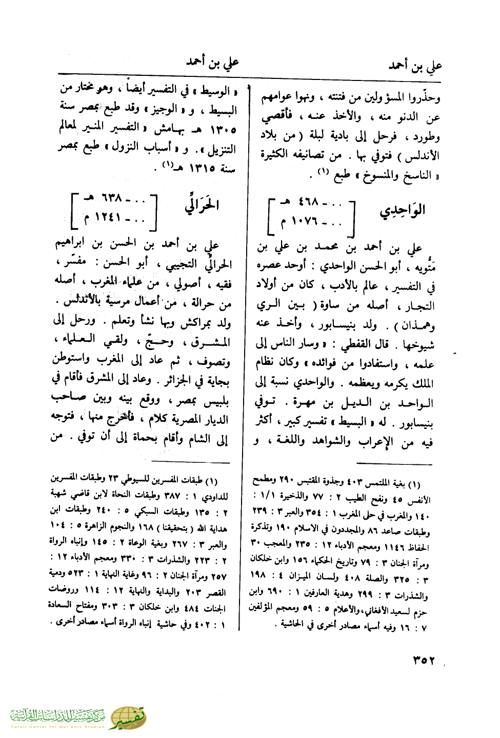 (¬1) طبقات المفسرين للسيوطي 23 وطبقات المفسرين للداودي 1: 387 وطبقات النحاة لابن قاض شهبة 2: 135 وطبقات السبكي 5: 240 وطبقات ابن هداية الله (بتحفيقنا) 168 والنجوم الزاهرة 5: 104 والعبر 3: 267 وبغية الوعاة 2: 45 وإنباه الرواة 2: 223 والشذرات 3: 330 ومعجم الأدباء 12: 257 ومرآة الجنان 2: 96 وغاية النهاية 1: 523 ودمية القصر 203 والبداية والنهاية 12: 114 وروضات الجنات 484 وابن خلكان 3: 303 ومفتاح السعادة 1: 402 وفي حاشية إنباه الرواة أسماء مصادر أخرى.