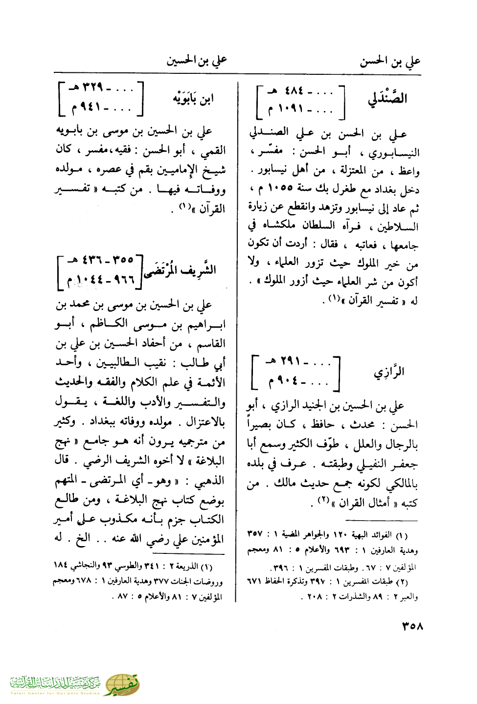 (¬1) الفوائد البهية 125 والجواهر المضية 1: 357 وهدية العارفين 1: 693 والأعلام 5: 81 ومعجم المؤلفين 7: 67. وطبقات المفسرين 1: 396.