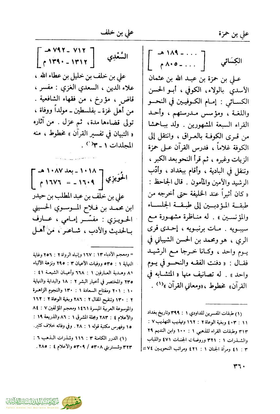 (¬1) طبقات المفسرين للداودي 1: 399 وتاريخ بغداد 11: 403 وبغية الوعاة 2: 162 وتهذيب التهذيب 7: 313 وطبقات القراء للذهبي 1: 100 وابن النديم 29 والشذرات 1: 321 وروضات الجنات 471 واللباب 3: 41 ومرآة الجنان 1: 421 ومراتب النحويين 74 =
