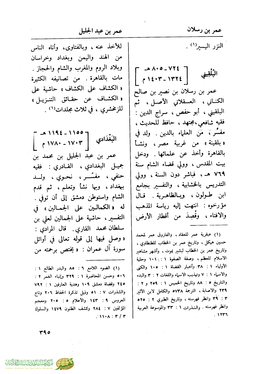 البلقيني [724 - 805 هـ / 1324 - 1403 م]