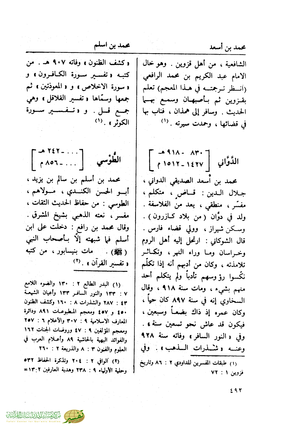 (¬1) طبقات المفسرين للداودي 2: 86 وتاريخ قزوين 1: 72.