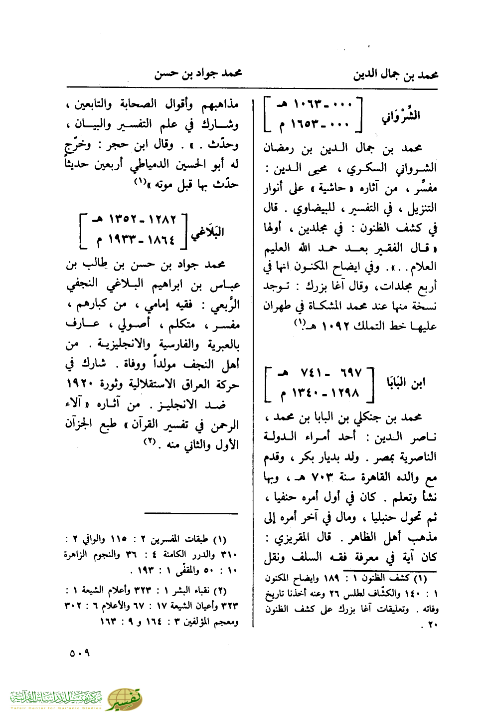 (¬1) طبقات المفسرين 2: 115 والوافي 2: 310 والدرر الكامنة 4: 36 والنجوم الزاهرة 15: 55 والمقفى 1: 193.