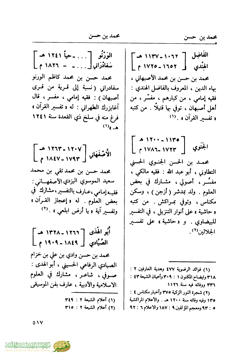 محمد حسن بن محمد كاظم الورنو سفادراني (نسبة إلى قرية من قرى أصبهان):