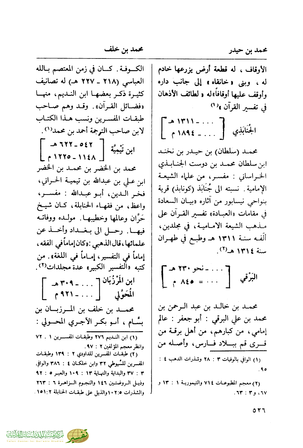 (¬2) طبقات المفسرين للداودي 2: 139 وطبقات المفسرين للسيوطي 32 وابن خلكان 4: 386 والوافي 3: 37 والبداية والنهاية 13: 109 والعبر 5: 92 وذيل الروضتين 146 والنجوم الزاهرة 6: 263 والشذرات 5: 102 والذيل على طبقات الحنابلة 2: 151.