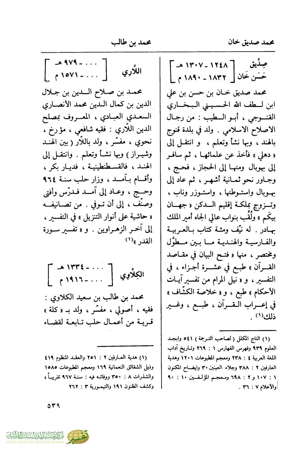 (¬1) التاج المكلل (لصاحب الترجمة) 541 وأبجد العلوم 939 وفهرس الفهارس 1: 269 وتاريخ آداب اللغة العربية 4: 238 ومعجم المطبوعات 1201 وهدية العارفين 2: 388 وجلاء العينين 30 وإيضاح المكنون 1: 107 و 2: 698 ومعجم المؤلفين 10: 90 والأعلام 7: 36.