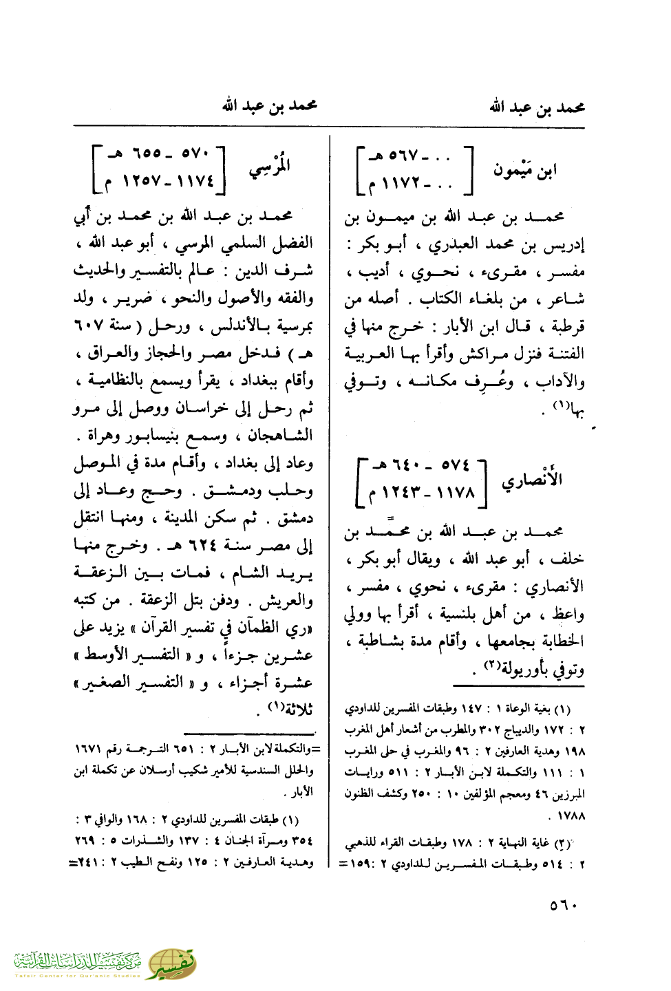 (¬1) طبقات المفسرين للداودي 2: 168 والوافي 3: 354 ومرآة الجنان 4: 137 والشذرات 5: 269 وهدية العارفين 2: 125 ونفح الطيب 2: 241 =