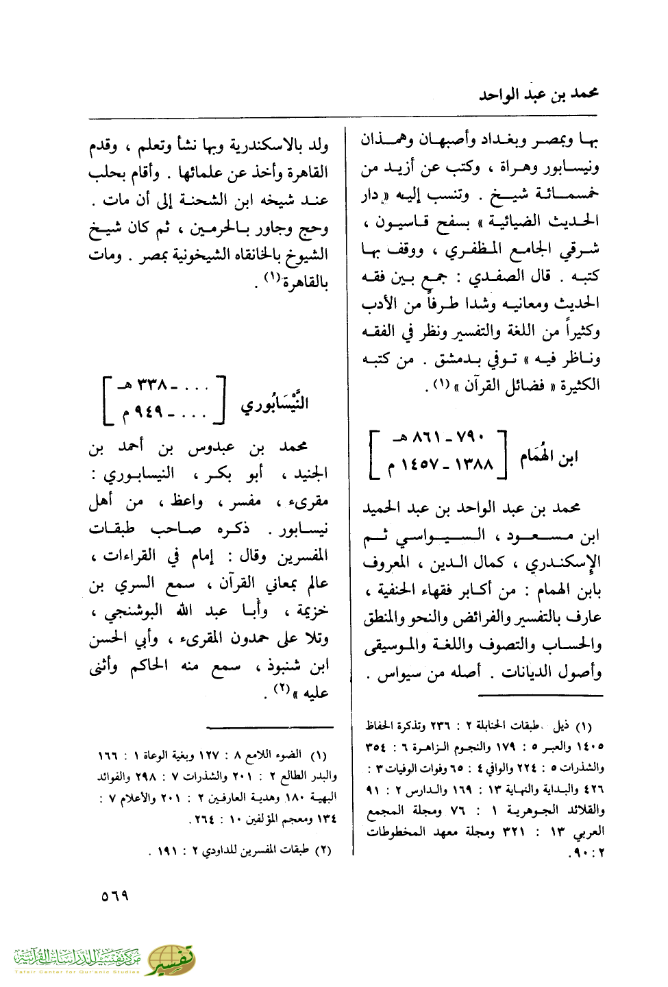 (¬2) طبقات المفسرين للداودي 2: 191.