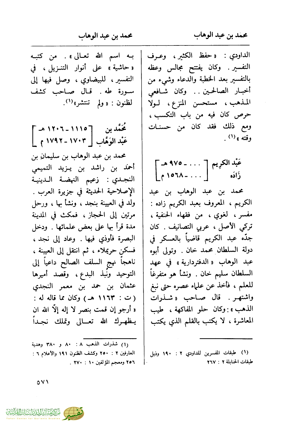 محمد بن عبد الوهاب [1115 - 1206 هـ / 1703 - 1792 م]