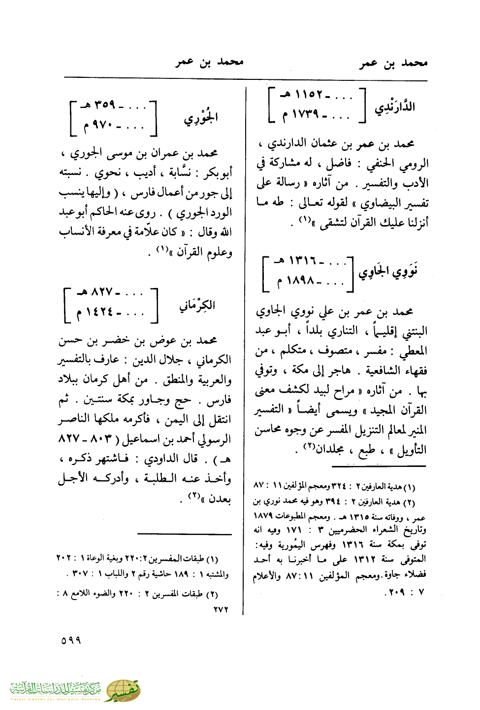(¬2) هدية العارفين 2: 394 وهو فيه محمد نوري بن عمر، ووفاته سنة 1315 هـ. ومعجم المطبوعات 1879 وتاريخ الشعراء الحضرميين 3: 171 وفيه أنه توفي بمكة سنة 1316 وفهرس التيمورية وفيه: المتوفى سنة 1312 على ما أخبرنا به أحد فضلاء جاوة. ومعجم المؤلفين 87: 11 والأعلام 7: 209.