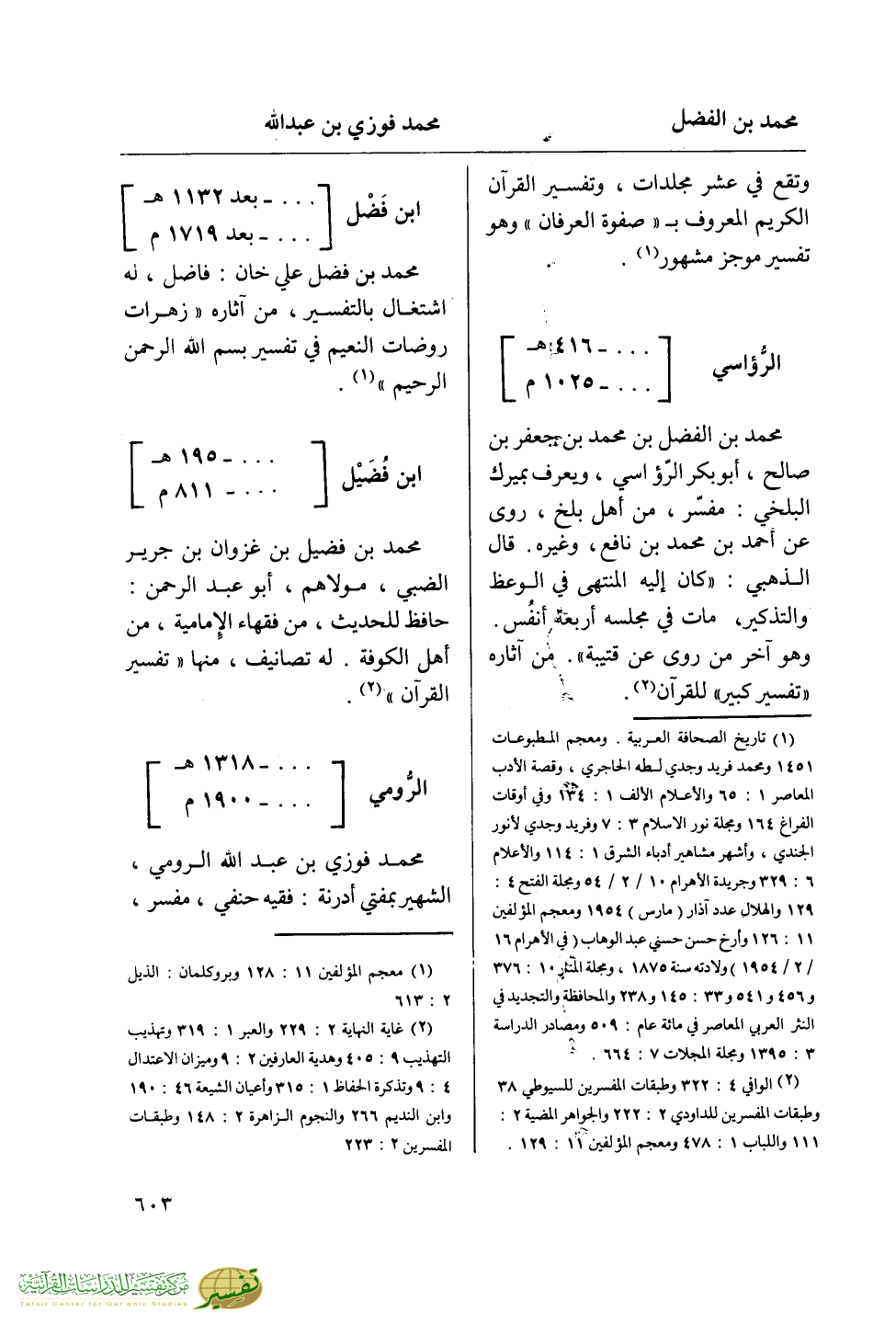 (¬2) غاية النهاية 2: 229 والعبر 1: 319 وتهذيب التهذيب 9: 405 وهدية العارفين 2: 9 وميزان الاعتدال 4: 9 وتذكرة الحفاظ 1: 315 وأعيان الشيعة 46: 190 وابن النديم 266 والنجوم الزاهرة 2: 148 وطبقات المفسرين 2: 223.