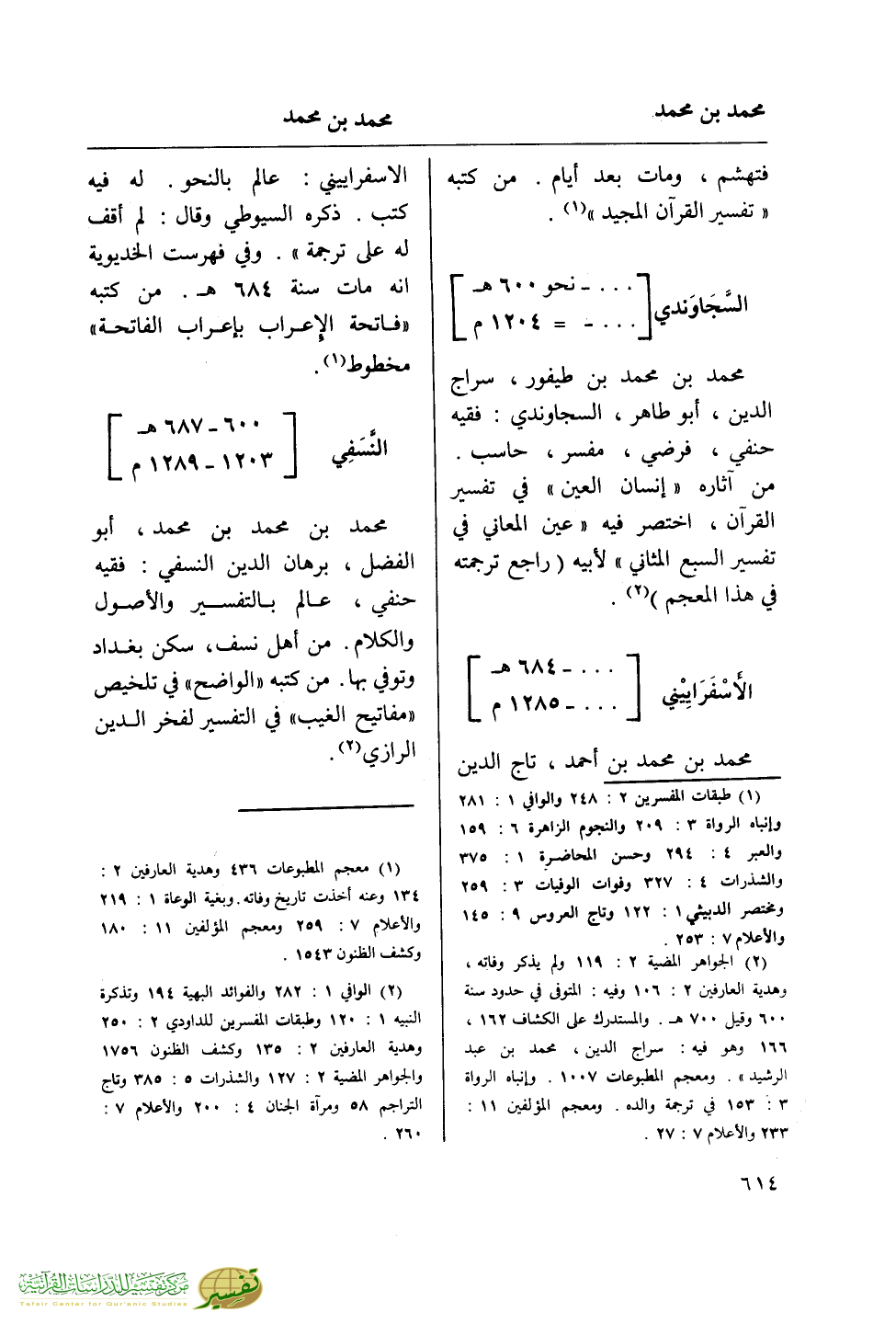 (¬2) الوافي 1: 282 والفوائد البهية 194 وتذكرة النبيه 1: 120 وطبقات المفسرين للداودي 2: 250 وهدية العارفين 2: 135 وكشف الظنون 1756 والجواهر المضية 2: 127 والشذرات 5: 385 وتاج التراجم 58 ومرآة الجنان 4: 200 والأعلام 7: 260.