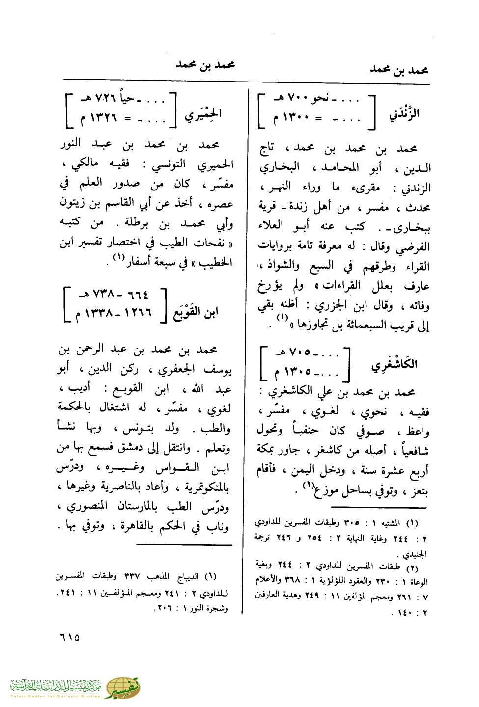(¬1) المشتبه 1: 305 وطبقات المفسرين للداودي 2: 244 وغاية النهاية 2: 254 و 246 ترجمة الجنبدي.