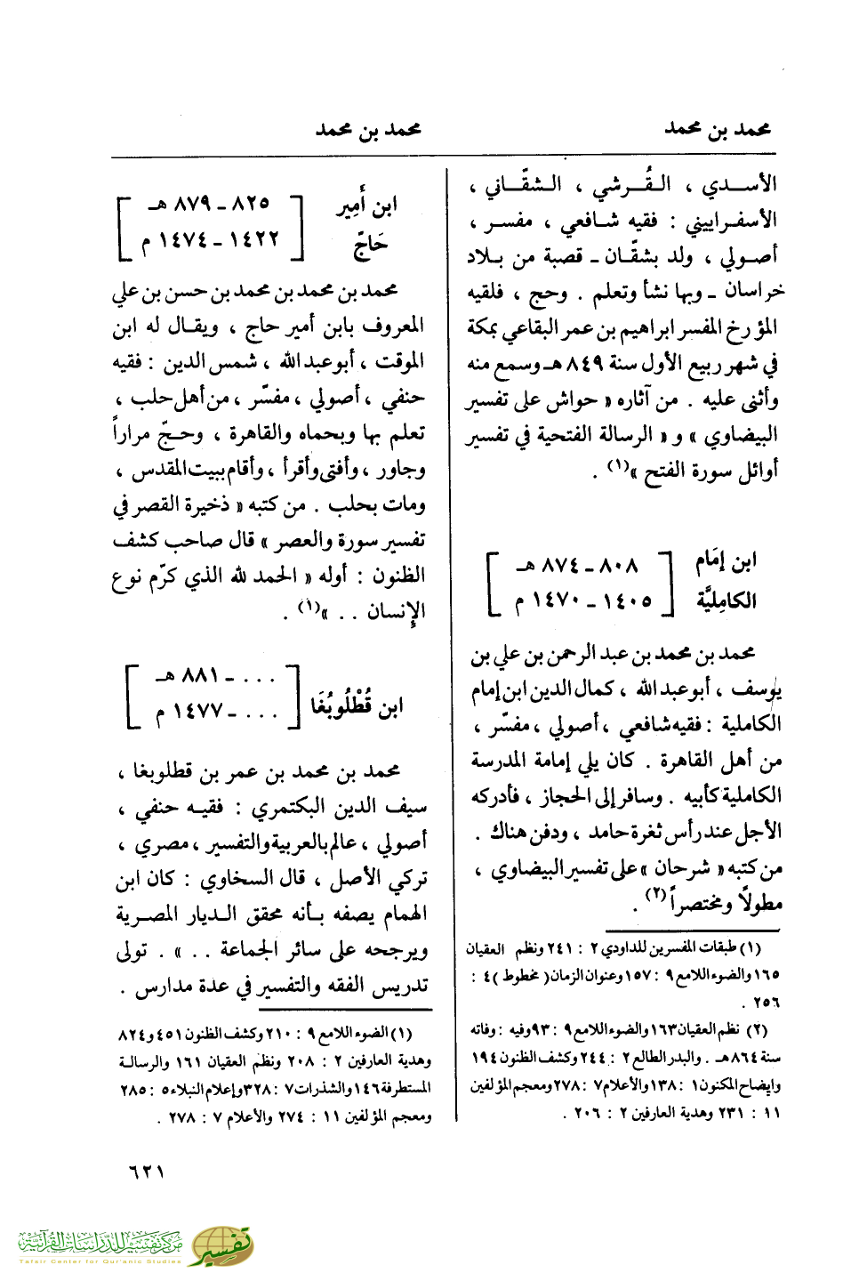 (¬1) طبقات المفسرين للداودي 2: 241 ونظم العقيان 165 والضوء اللامع 9: 157 وعنوان الزمان (مخطوط) 4: