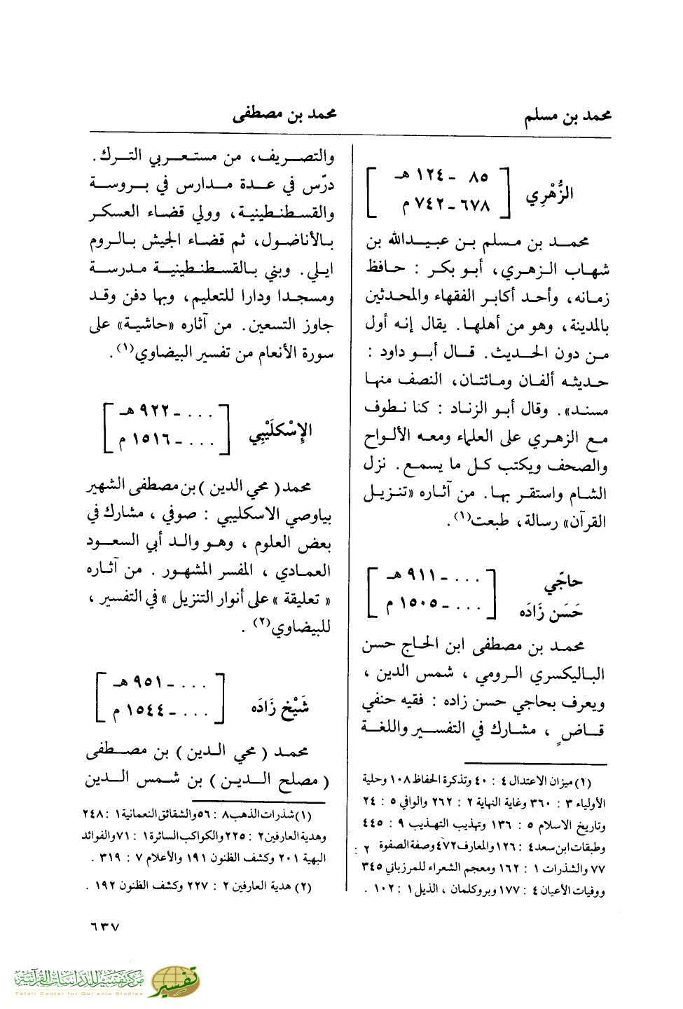 (¬1) شذرات الذهب 8: 56 والشقائق النعماية 1: 248 وهدية العارفين 2: 225 والكوا كب السائرة 1: 71 والفوائد البهية 201 وكشف الظنون 191 والأعلام 7: 319.