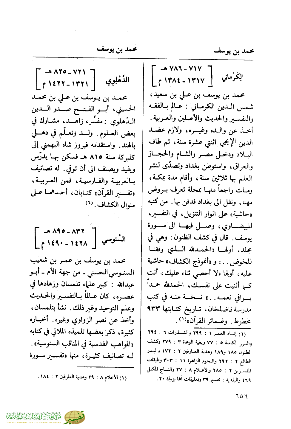 (¬1) إنباء الغمر 1: 299 والشذرات 6: 294 والدرر الكامنة 5: 77 وبغية الوعاة 3: 279 وكشف الظنون 185 و 189 وهدية العارفين 2: 172 والبدر الطالع 2: 292 والنجوم الزاهرة 11: 303 وطبقات المفسرين 2: 285 والأعلام 8: 27 والتاج المكلل 469 والبلدية: تفسير 39 وتعليقات آغا بزوك 20.