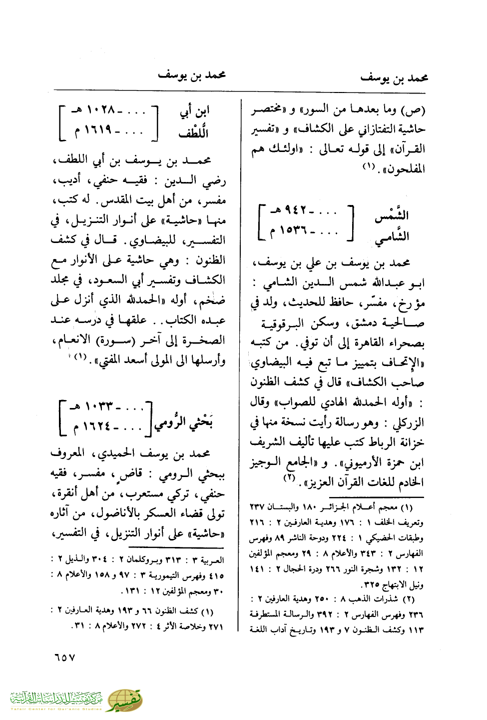 (¬1) كشف الظنون 66 و 193 وهدية العارفين 2: 271 وخلاصة الأثر 4: 272 والأعلام 8: 31.