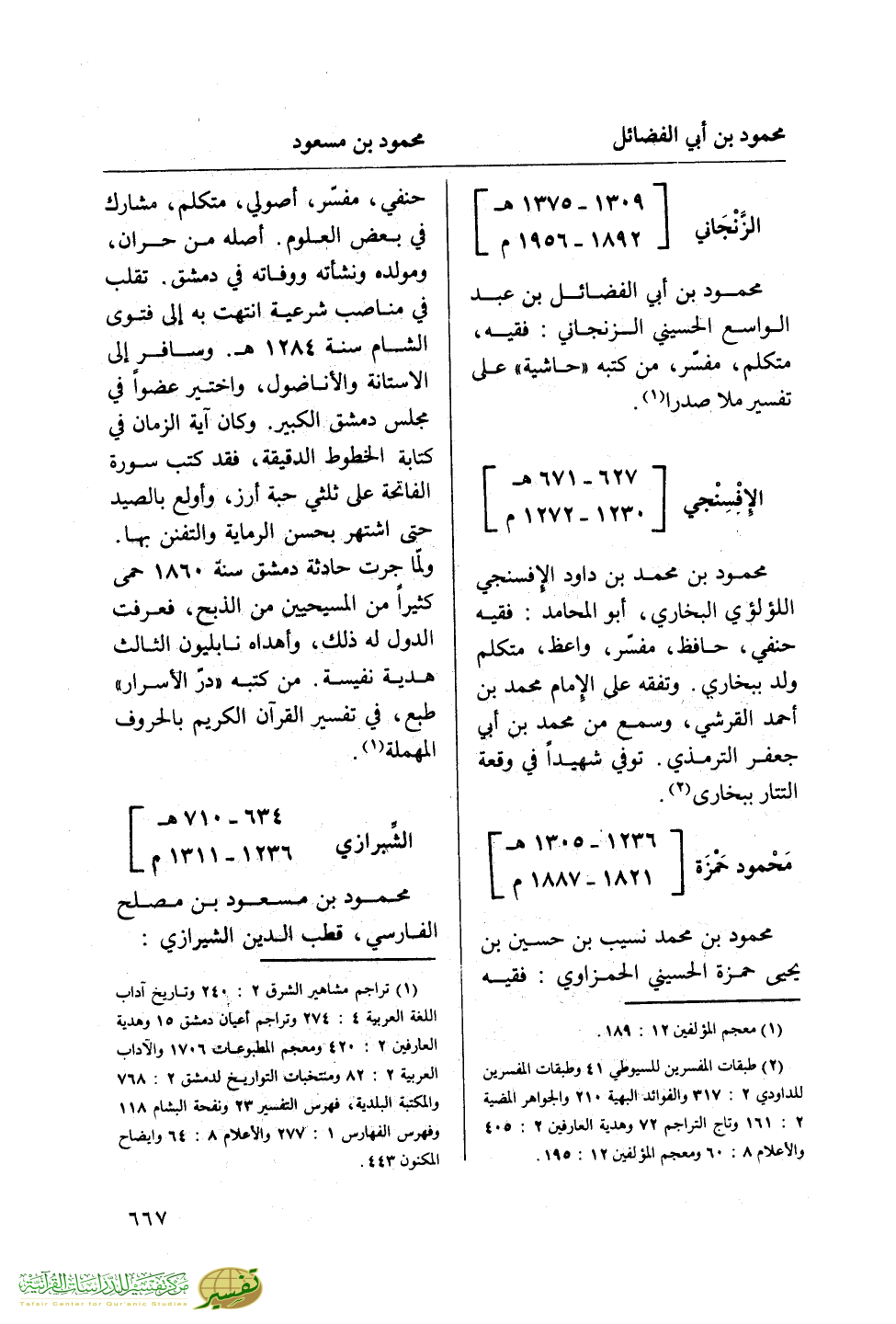(¬2) طبقات المفسرين للسيوطي 41 وطبقات المفسرين للداودي 2: 317 والفوائد البهية 210 والجواهر المضية 2: 161 وتاج التراجم 72 وهدية العارفين 2: 405 والأعلام 8: 60 ومعجم المؤلفين 12: 195.