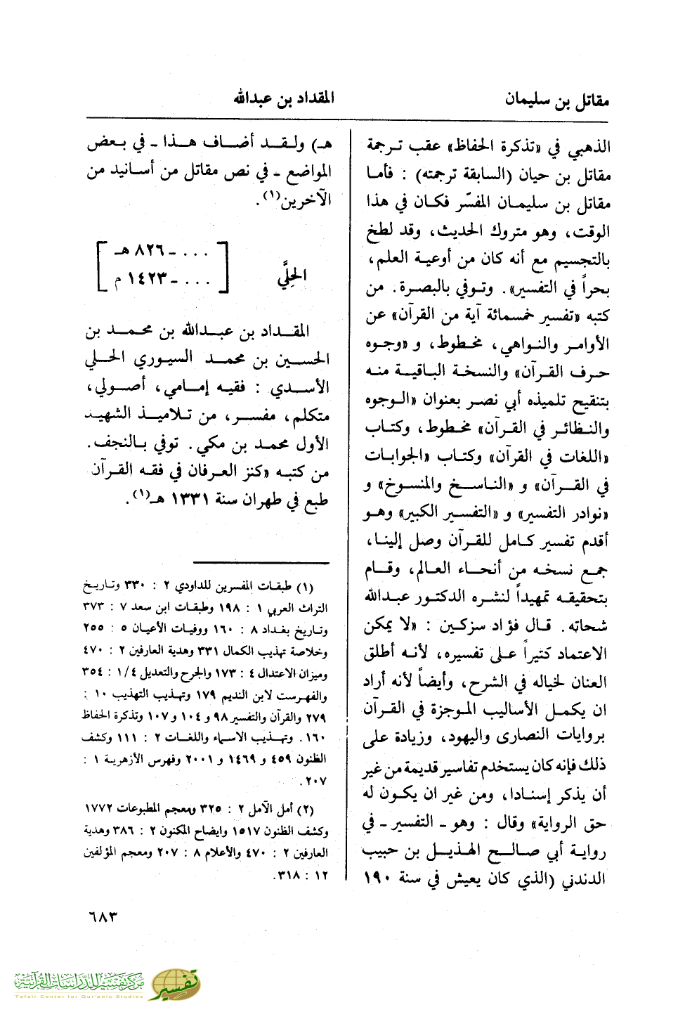 (¬2) أمل الآمل 2: 325 ومعجم المطبوعات 1772 وكشف الظنون 1517 وإيضاح المكنون 2: 386 وهدية العارفين 2: 470 والأعلام 8: 207 ومعجم المؤلفين 12: 318.