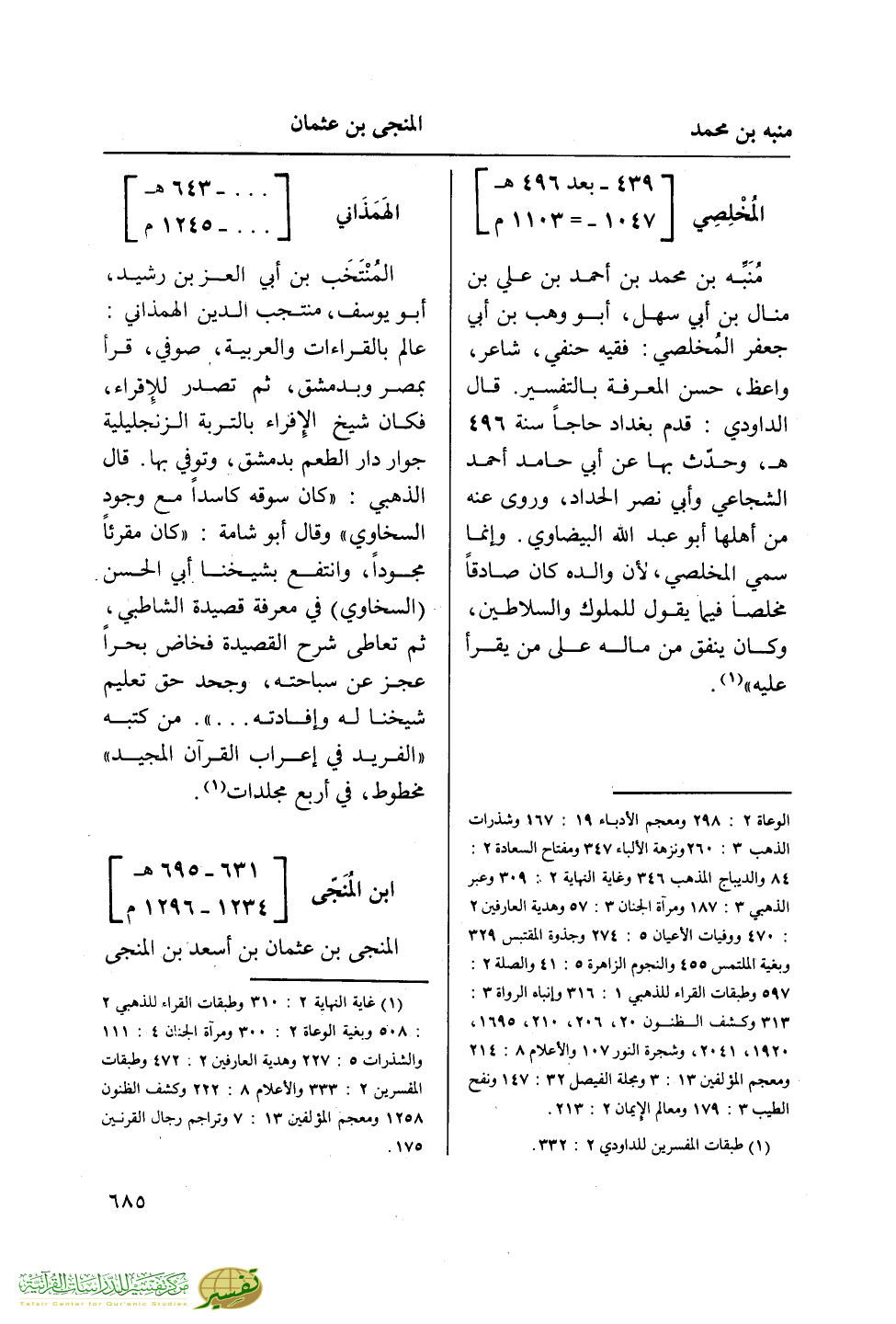 (¬1) غية النهاية 2: 310 وطبقات القراء للذهبي 2: 508 وبغية الوعاة 2: 305 ومرآة الجنان 4: 111 والشذرات 5: 227 وهدية العارفين 2: 472 وطبقات المفسرين 2: 333 والأعلام 8: 222 وكشف الظنون 1258 ومعجم المؤلفين 13: 7 وتراجم رجال القرنين 175.