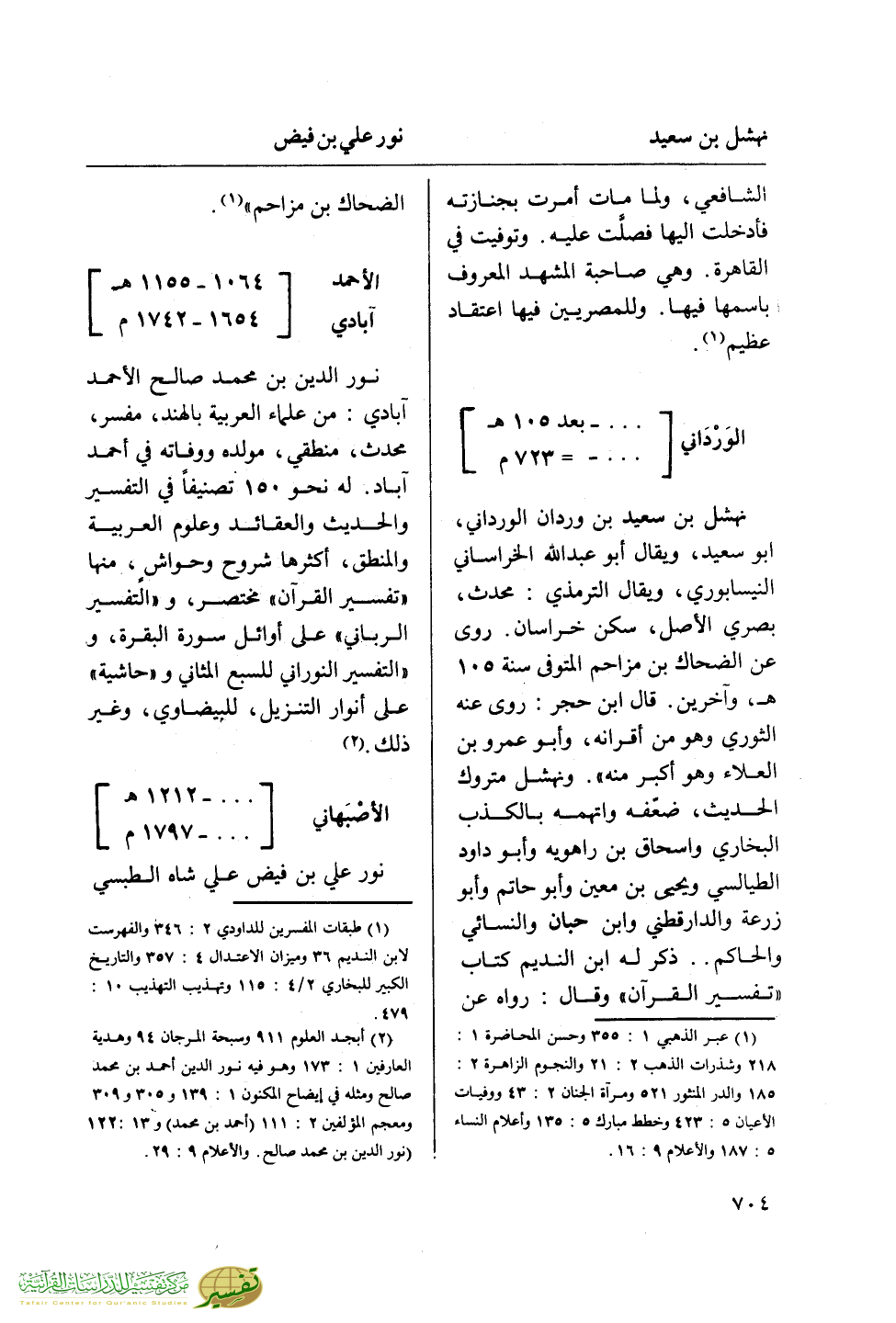 (¬1) طبقات المفسرين للداودي 2: 346 والفهرست لابن النديم 36 وميزان الاعتدال 4: 357 والتاريخ الكبير للبخاري 2/ 4: 115 وتهذيب التهذيب 10: 479.