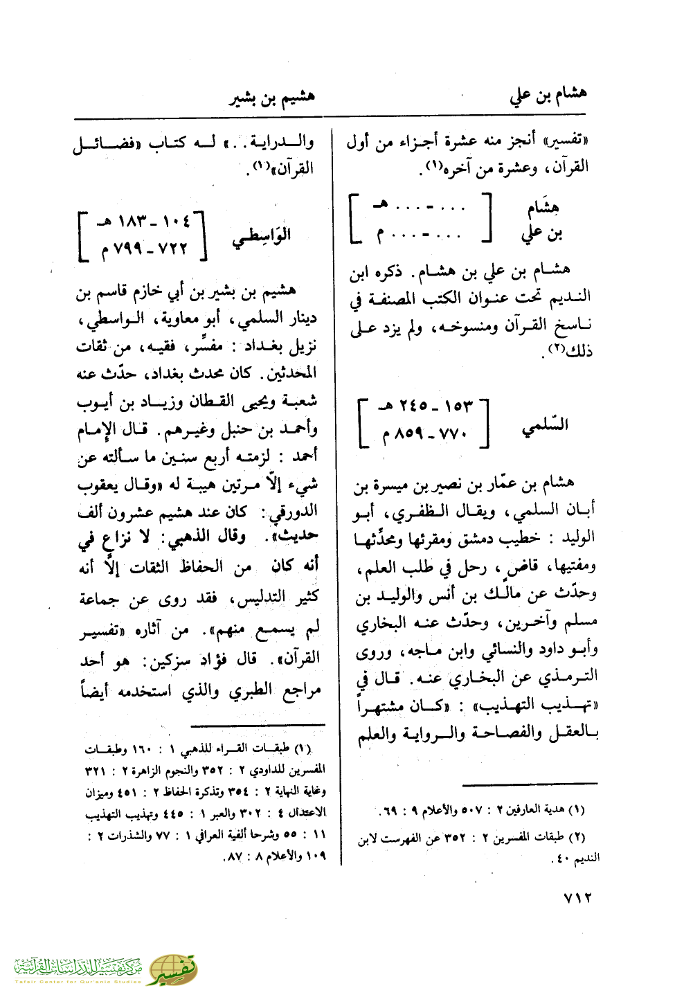 (¬1) طبقات القراء للذهبي 1: 160 وطبقات المفسرين للداودي 2: 352 والنجوم الزاهرة 2: 321 وغاية النهاية 2: 304 وتذكرة الحفاظ 2: 451 وميزان الاعتدال 4: 352 والعبر 1: 445 وتهذيب التهذيب 11: 55 وشرحا ألفية العراقي 1: 77 والشذرات 2: 109 والأعلام 8: 87.