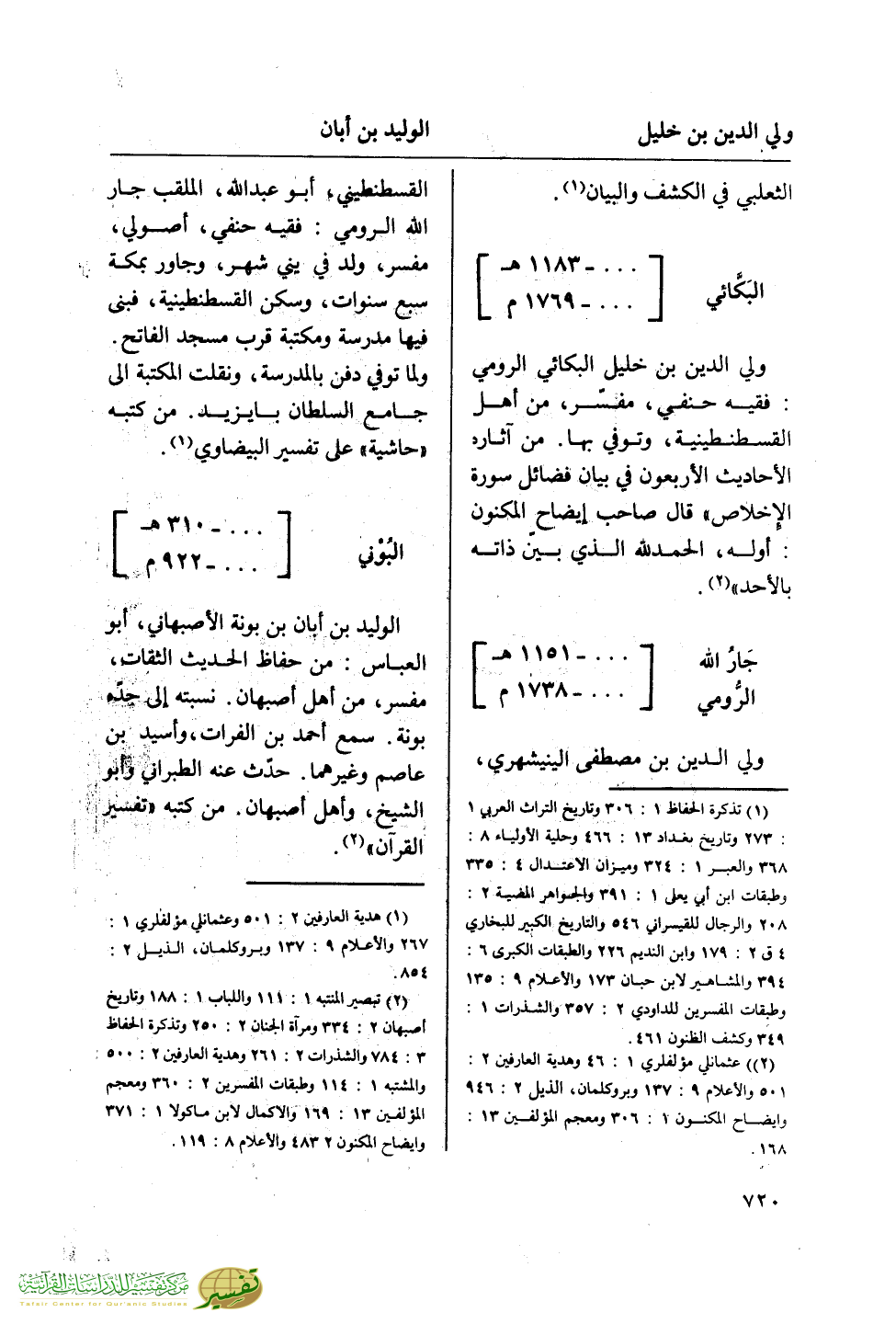 (¬2) تبصير المنتبه 1: 111 واللباب 1: 188 وتاريخ أصبهان 2: 334 ومرآة الجنان 2: 250 وتذكرة الحفاظ 3: 784 والشذرات 2: 261 وهدية العارفين 2: 500. والمشتبه 1: 114 وطبقات المفسرين 2: 360 ومعجم المؤلفين 13: 169 والإكمال لابن ماكولا 1: 371 وإيضاح المكنون 2: 483 والأعلام 8: 119.