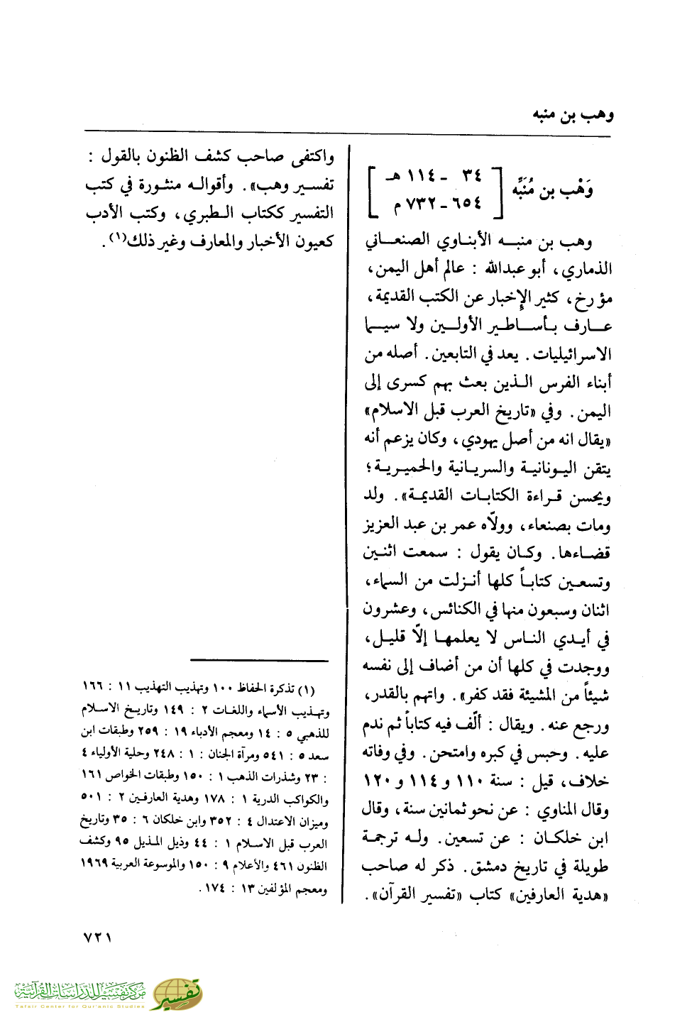 وهب بن منبه [34 - 114 هـ / 654 - 732 م]