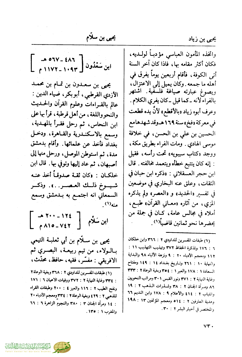 (¬1) طبقات المفسرين للداودي 2: 366 وابن خلكان 6: 176 وتذكرة الحفاظ 372 وتهذيب التهذيب 11: 112 ومعجم الأدباء 20: 9 ونزهة الألباء 98 والبداية والنهاية 10: 261 وتاريخ بغداد 14: 149 ومفتاح السعادة 1: 178 والعبر 1: 354 وبغية الوعاة 2: 333 وغاية النهاية 2: 371 ونور القبس 301 ومراتب النحويين 86 ومرآة الجنان 2: 38 وشذرات الذهب 2: 19 واللباب 2: 414 والأعلام 9: 178 وابن النديم 66 وهدية العارفين 2: 514 ومعجم المؤلفين 13: 198 والمختصر في أخبار البشر 2: 30.
