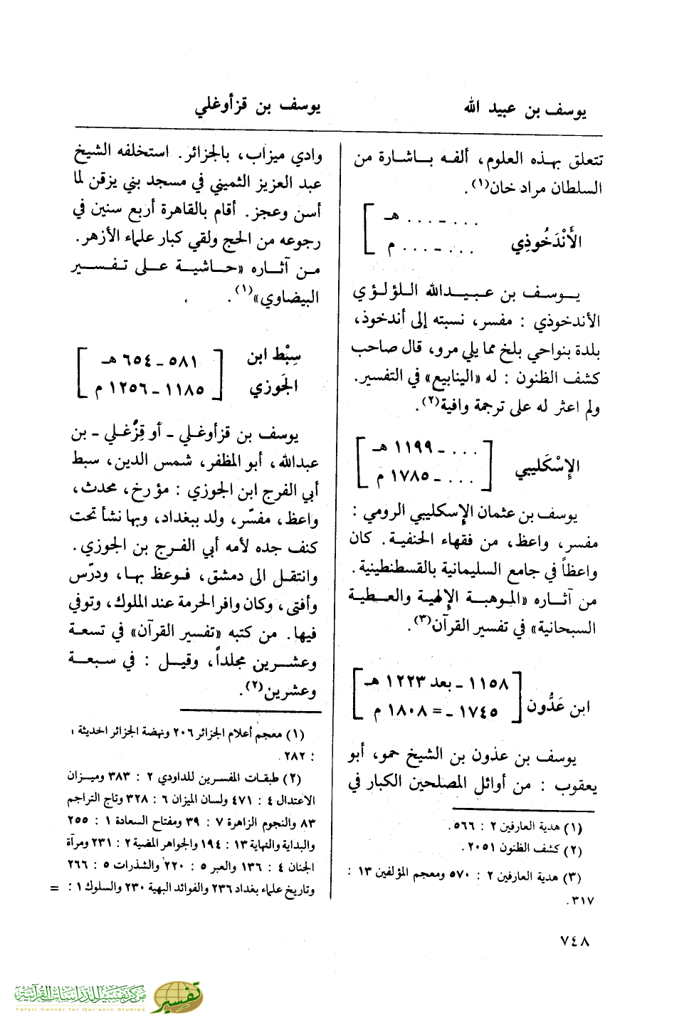(¬2) طبقات المفسرين للداودي 2: 383 وميزان الاعتدال 4: 471 ولسان الميزان 6: 328 وتاج التراجم 83 والنجوم الزاهرة 7: 39 ومفتاح السعادة 1: 255 والبداية والنهاية 13: 194 والجواهر المضية 2: 231 ومرآة الجنان 4: 136 والعبر 5: 220 والشذرات 5: 266 وتاريخ علماء بغداد 236 والفوائد البهية 230 والسلوك 1: =