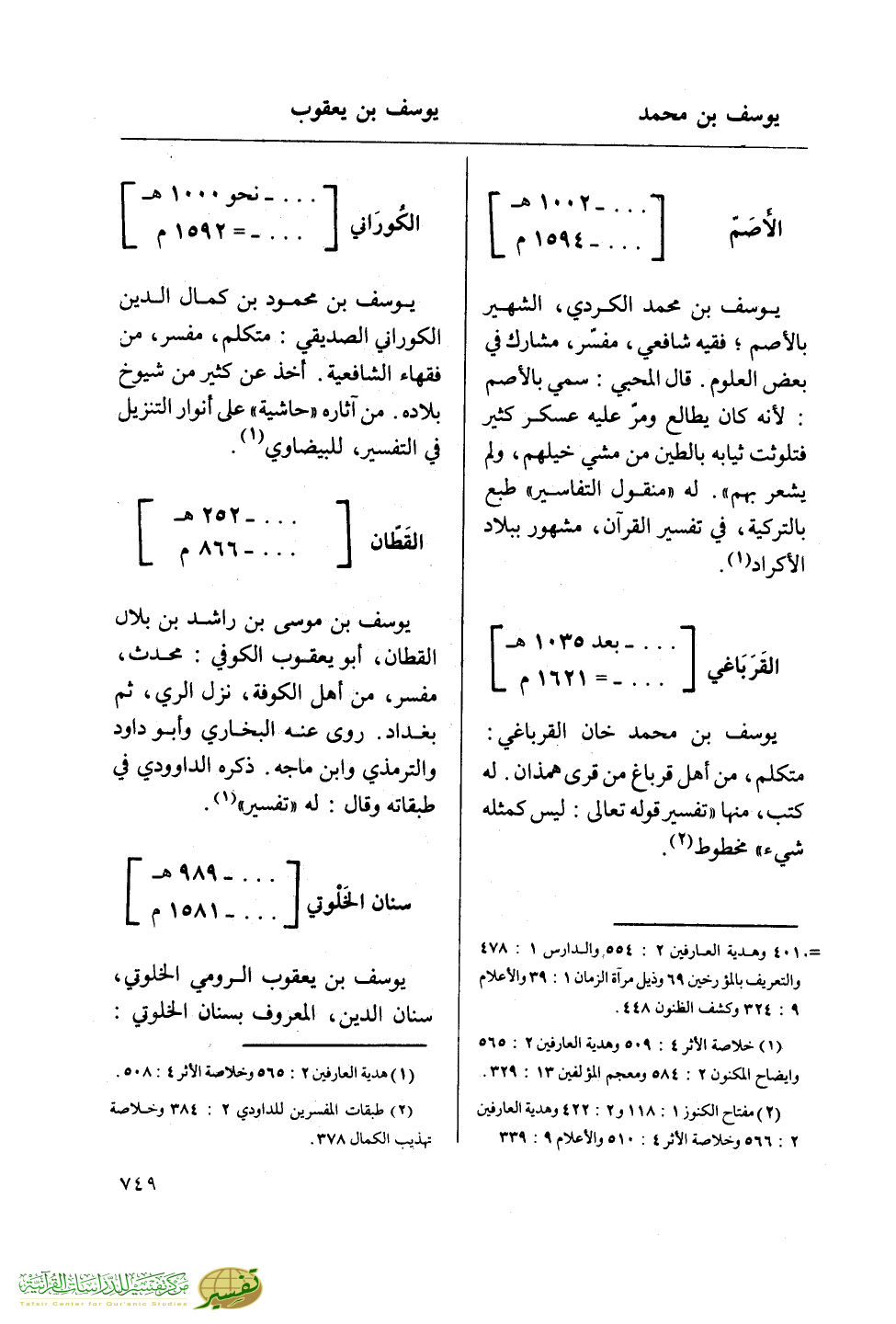 (¬2) طبقات المفسرين للداودي 2: 384 وخلاصة تهذيب الكمال 378.