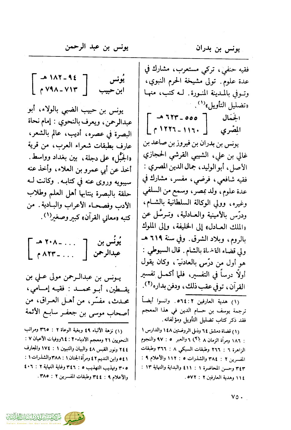 (¬1) نزهة الأبلاء 49 وبغية الوعاة 2: 365 ومراتب النحويين 21 ومعجم الأدباء 20: 64 ووفيات الأعيان 7: 244 ونور القبس 48 والبيان والتبيين 1: 174 والمعارف 541 وابن النديم 42 ومرآة الجنان 1: 388 والشذرات 1: 305 وتهذيب التهذيب 5: 346 وغايه النهاية 2: 406 والأعلام 9: 344 وطبقات المفسرين 2: 385.