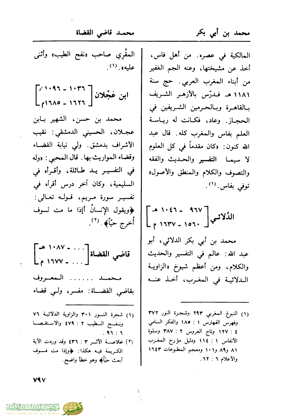 (¬1) شجرة النور 301 والزاوية الدلائية 76 ونفح الطيب 2: 479 والاستقصا 6: 96.