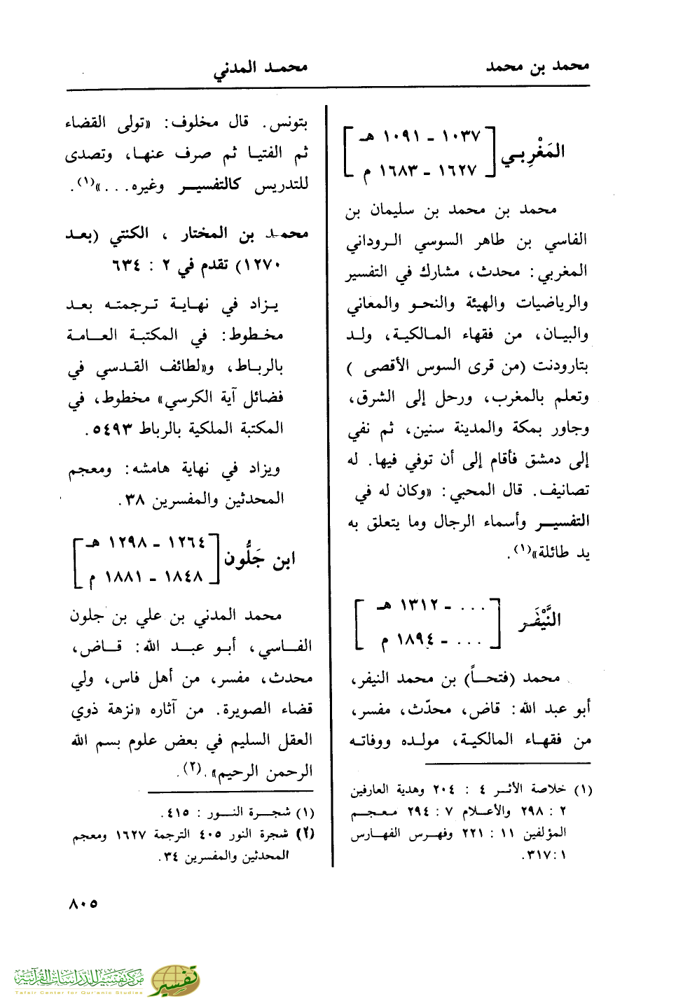 (¬2) شجرة النور 405 الترجمة 1627 ومعجم المحدثين والمفسرين 34.