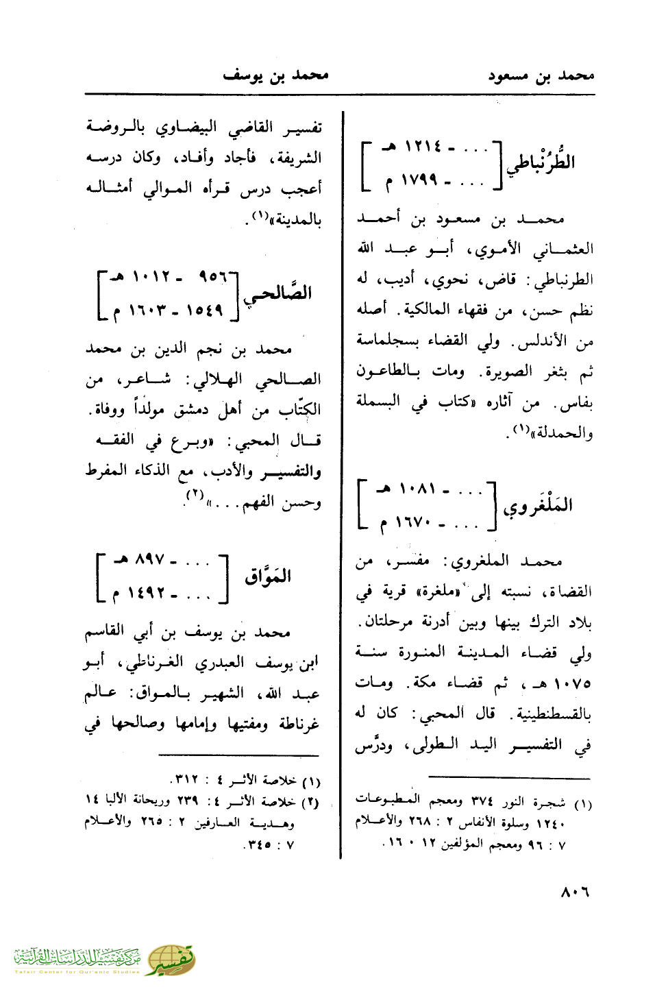 (¬1) خلاصة الأثر 4: 312.