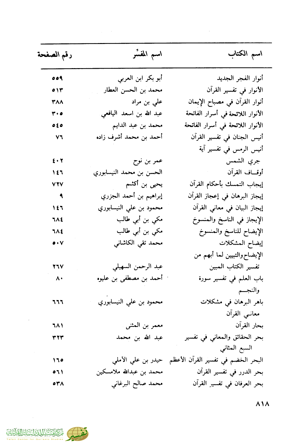 اسم الكتاب … اسم المفسر … رقم الصفحة