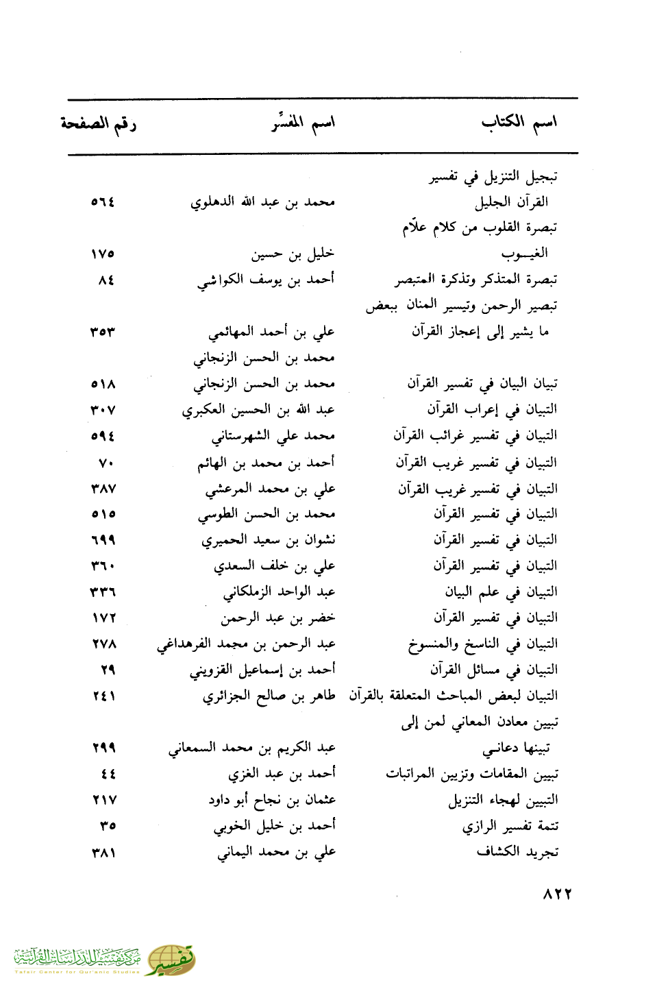 اسم الكتاب … اسم المفسر … رقم الصفحة