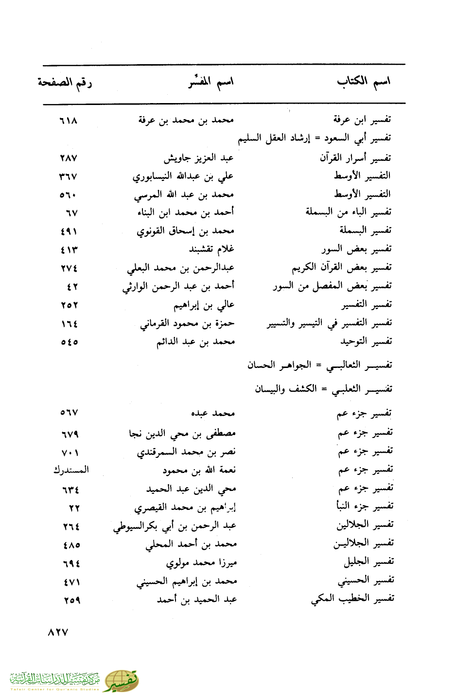 اسم الكتاب … اسم المفسر … رقم الصفحة
