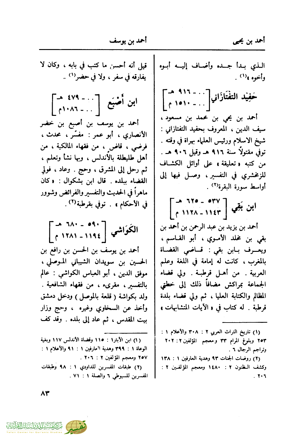(¬2) طبقات المفسرين للداودي 1: 98 وطبقات المفسرين للسيوطي 6 والصلة 1: 71.