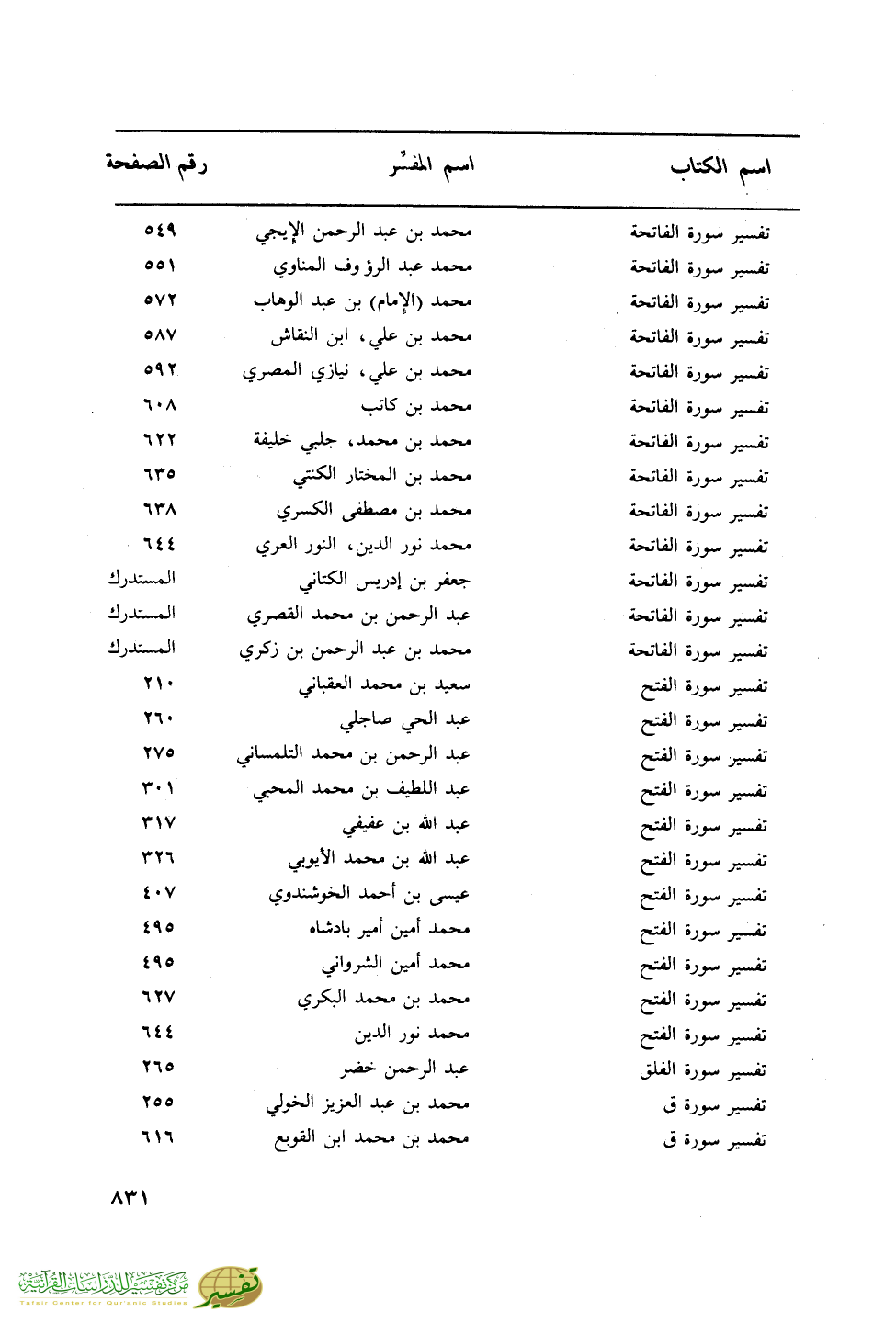 اسم الكتاب … اسم المفسر … رقم الصفحة