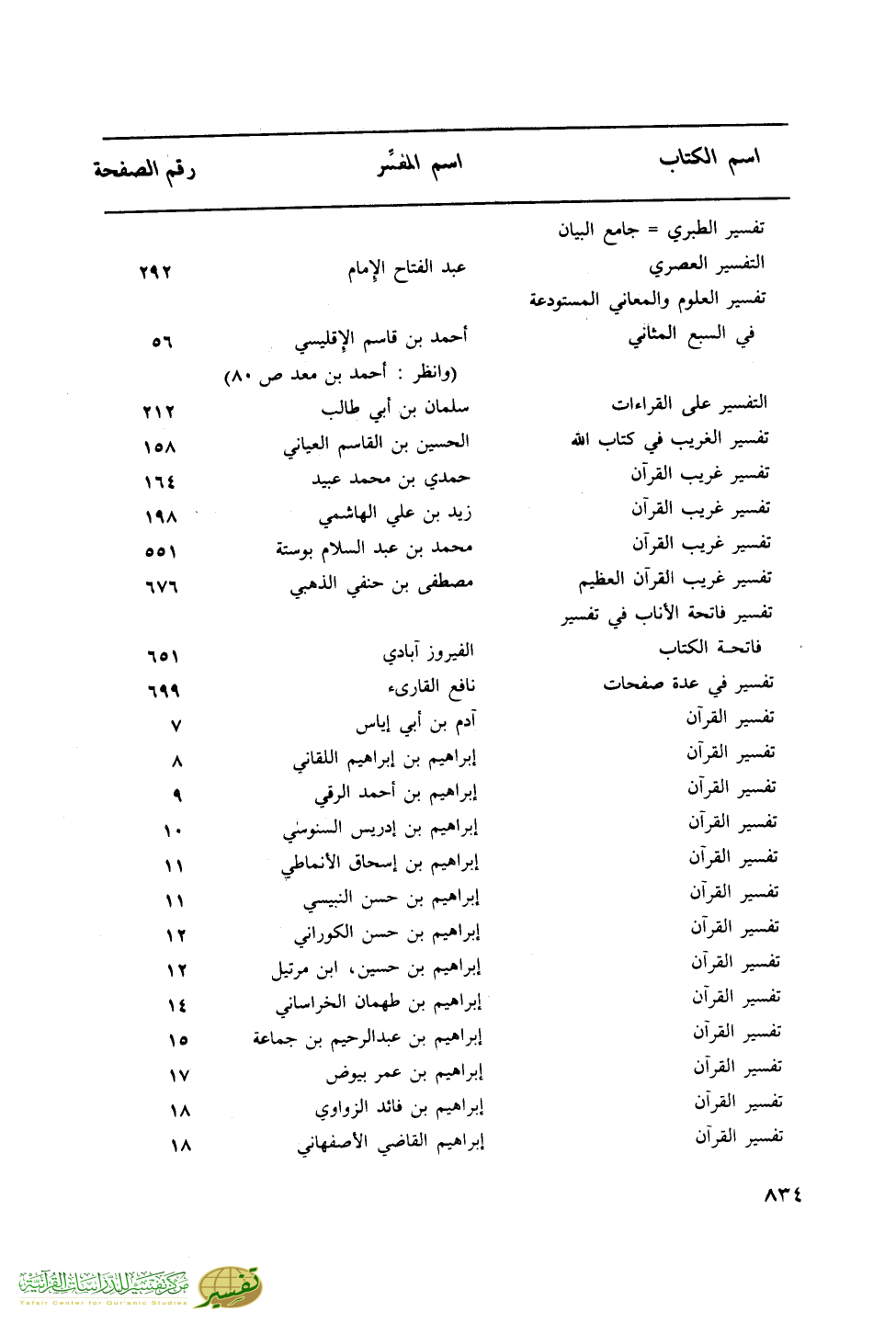 اسم الكتاب … اسم المفسر … رقم الصفحة