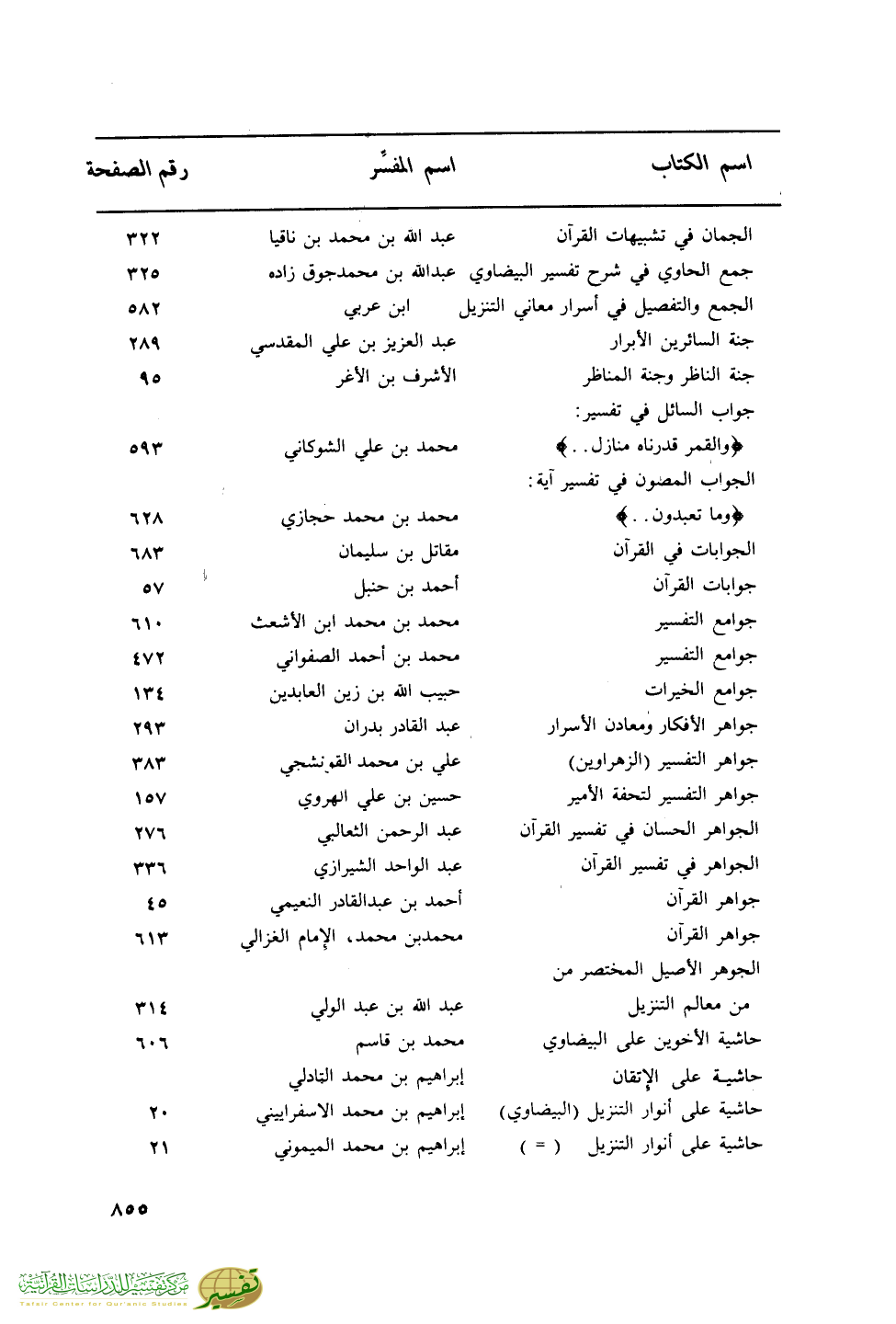 اسم الكتاب … اسم المفسر … رقم الصفحة